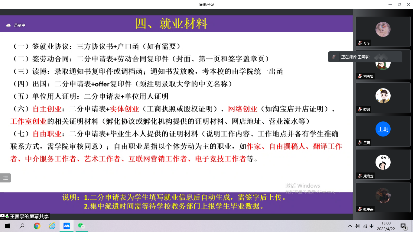 王国亭老师围绕近年就业形势、关键时间节点、就业政策解读、学校就业指导等方面结合生动的毕业生案例来进行了详细的解读和介绍,鼓励同学们充分做好就业准备,大胆拓宽就业渠道,调整心态,积极就业。赵世梁老师结合学校2021版硕士研究生培养管理文件进行解读,重点强调在培养环节、学术成果、论文发表等方面要求。傅景泉老师介绍了学院近年具有代表性的就业单位名录,鼓励同学们把握好就业黄金期,积极投递简历,谨慎签约。