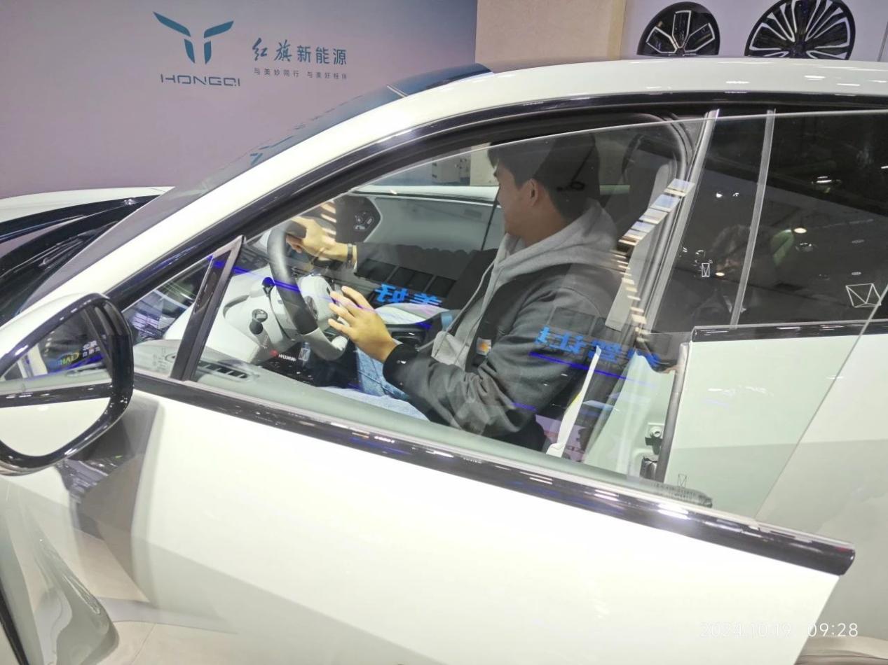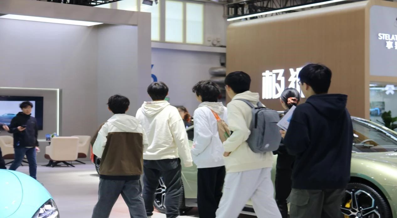 走进展会,一系列的新能源汽车呈现眼前,同学们走到了各家车商面前探索,工作人员热情迎接,不仅讲解了相关知识,还邀请同学们进入展览车内试驾。一些同学坐进华为问界M9时不禁赞叹其内饰之精美,空间之阔大,车机之智能,出来后更是连绵不绝。同时,新能源汽车的许多先进技术亦吸引了同学们求知的欲望,如华为问界增程式发动机、小米智能车机、理想魔毯空气悬架、沃尔沃自动避让功能等。这让同学们不但观有所感,而且观而有获。