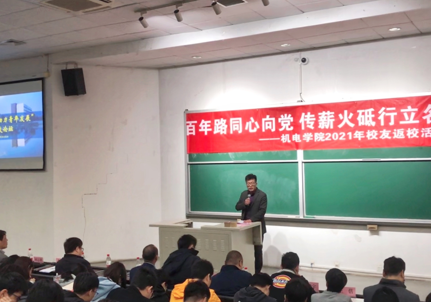 学院党委书记李大伟做总结讲话。他围绕“两个丰收”进行发言,其一是学院迎来了优秀校友,印证了在人才培养上的丰收,其二是在一代代人校友、师生的努力下,学校、学院在上一发展阶段取得了丰硕成果。他强调,北建大百年发展历程凝结了教育救国、敢为人先的红色文化基因,机电学子要勇担历史使命,在广阔舞台实现自我,让青春在祖国需要的地方绽放绚丽之花。