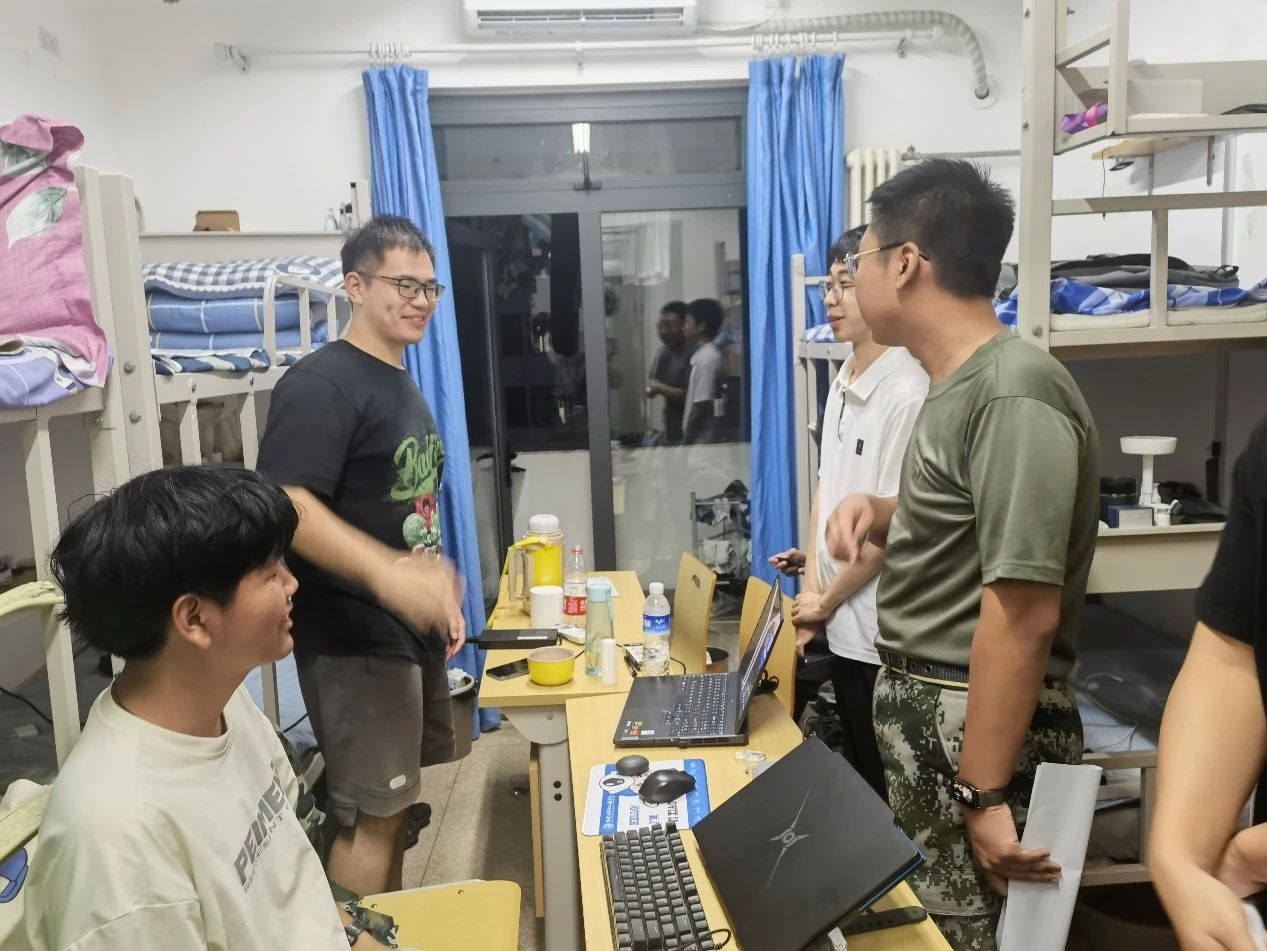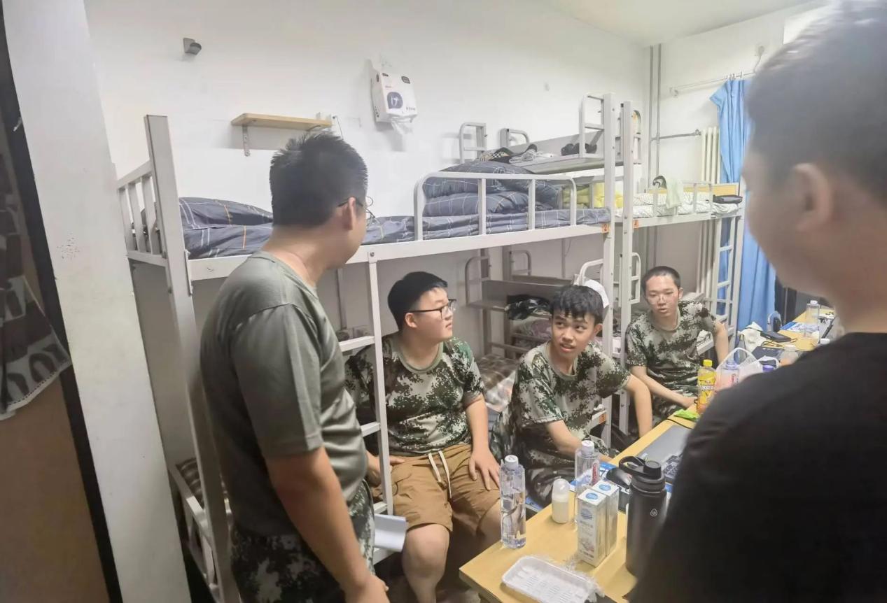 在走访过程中,傅景泉老师与新生们亲切沟通,详细询问了他们在军训时期的适应情况,并强调了相关要求。同时,老师还关心慰问了新生的生活状况,鼓励他们积极适应新环境,遇到问题及时与辅导员或老师沟通。同时部分新生也通过提前学习高数,观看新闻联播等方式丰富军训之余的生活。