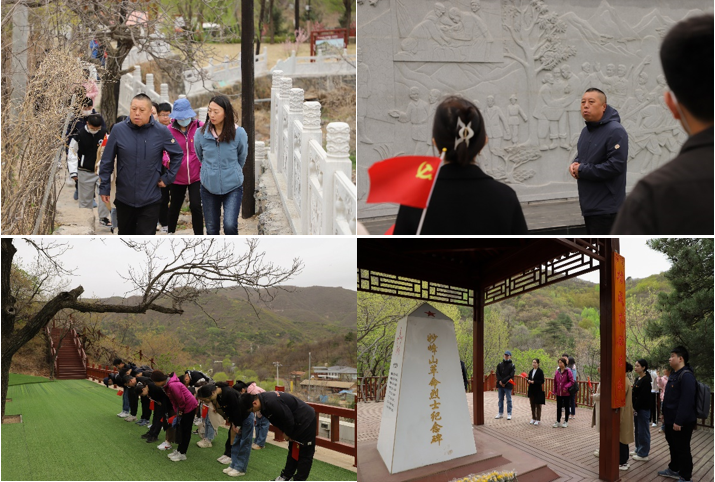 师生们在涧沟村领导赵书记和王书记的带领下参观了英雄山,重温革命先辈红色路线,沉浸式了解“平西情报联络站”在革命和解放战争时期的重要作用。在讲解中了解到梁波等妙峰山革命烈士的生平事迹,师生们在梁波烈士铜像前三鞠躬,缅怀为党和国家革命事业奉献出宝贵生命的英雄烈士。