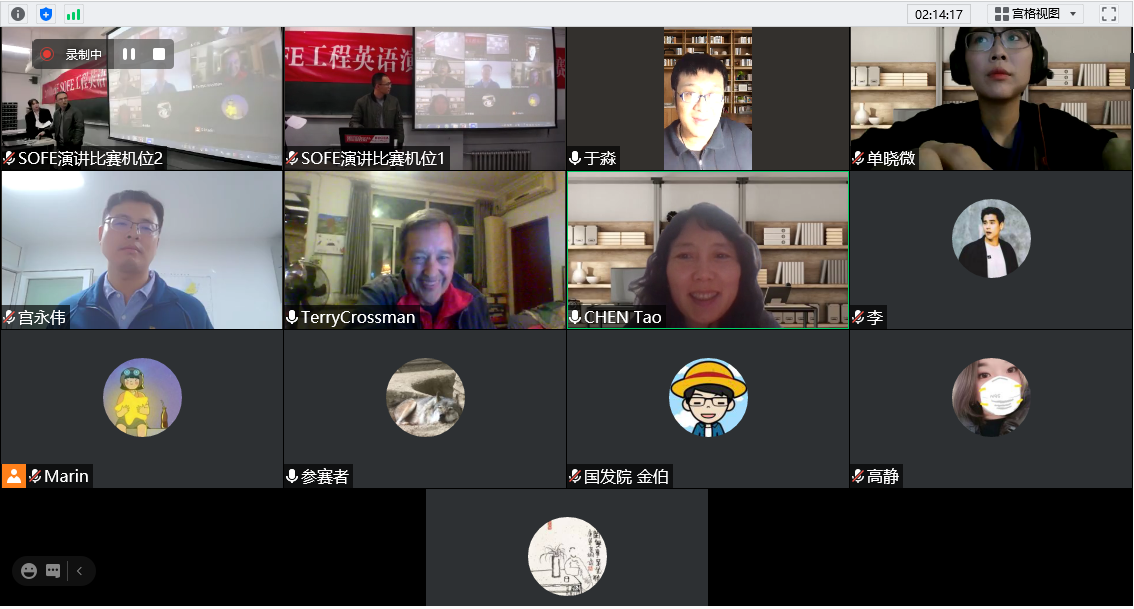 疫情之下的特殊时期,2020年IMechE SOFE北京区英语演讲比赛采取选手线下比赛、评委专家及观众线上观看的比赛形式,借助腾讯会议线上会议软件,良好展示了现场演讲选手的多个角度,并将演讲音频清晰传达给线上专家及观众。本次比赛的评委有:亚色网 国际化发展研究院(国际教育学院)副院长陈韬、亚色网 “建大杰青”宫永伟、亚色网 亚色网 副教授于淼、亚色网 亚色网 教师单晓微、亚色网 国际化发展研究院(国际教育学院)拟聘任美国籍外教高天瑞(Terry)。