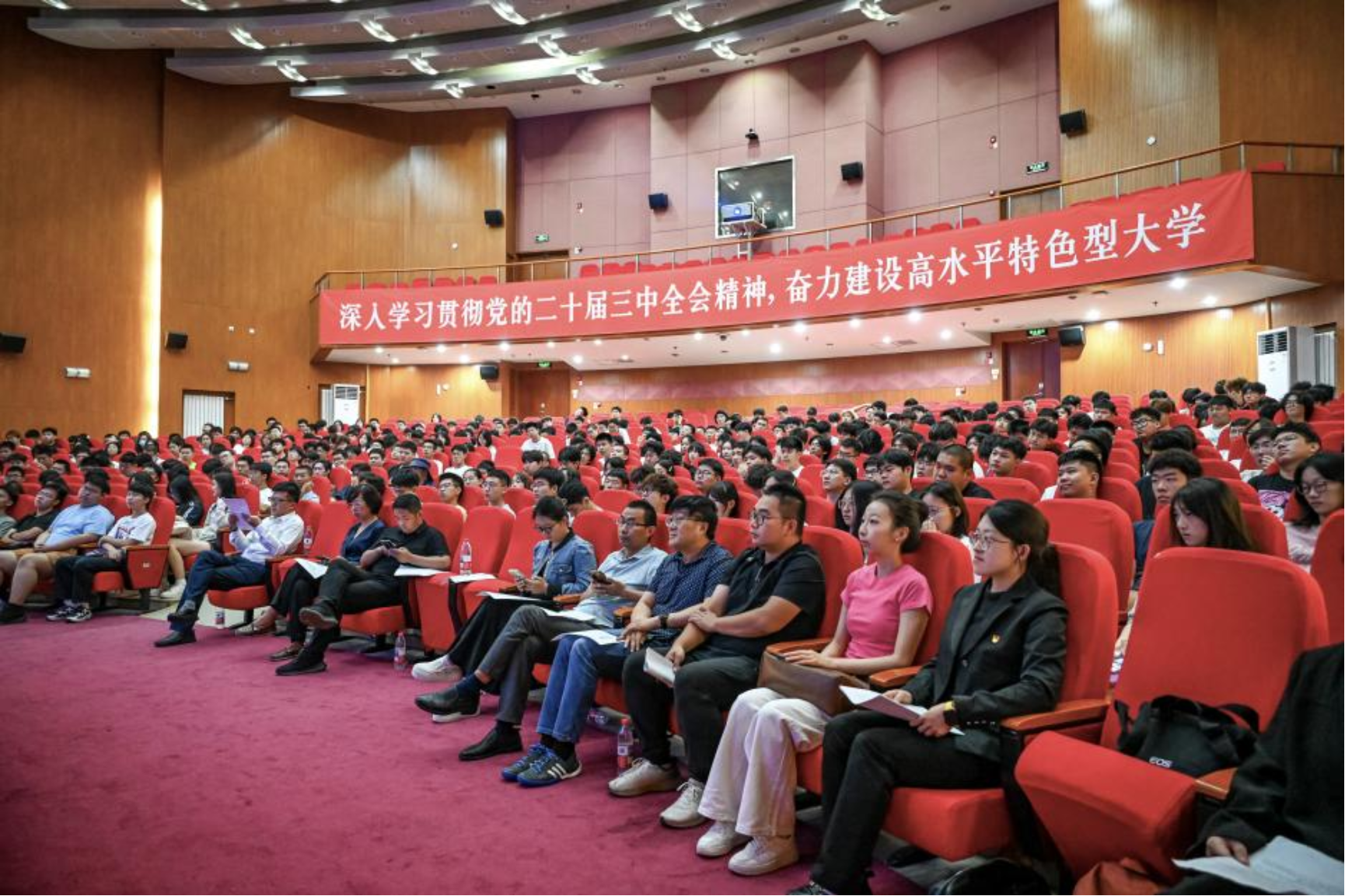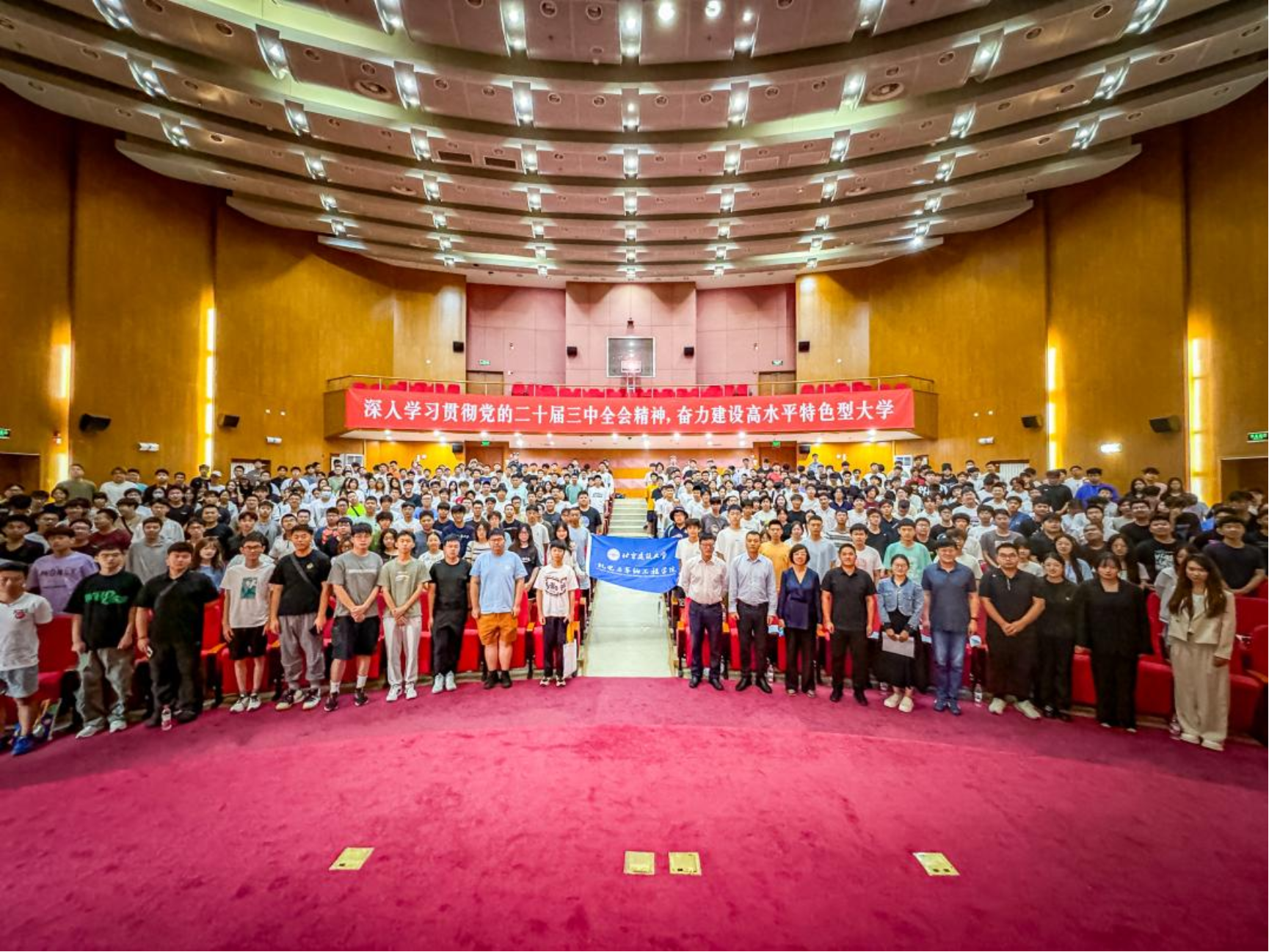 王衍学在致辞中介绍了学院的历史沿革、专业设置、丰硕成果与未来规划,并向新生送上真挚祝福。他提出三点期望。一要踏实学习,夯实专业基础,为后续深造和竞赛筑牢知识根基;二要拓展视野,积极参与社团活动,培养多元兴趣;三要尽早确立目标,科学规划大学生活,争做优秀新青年。