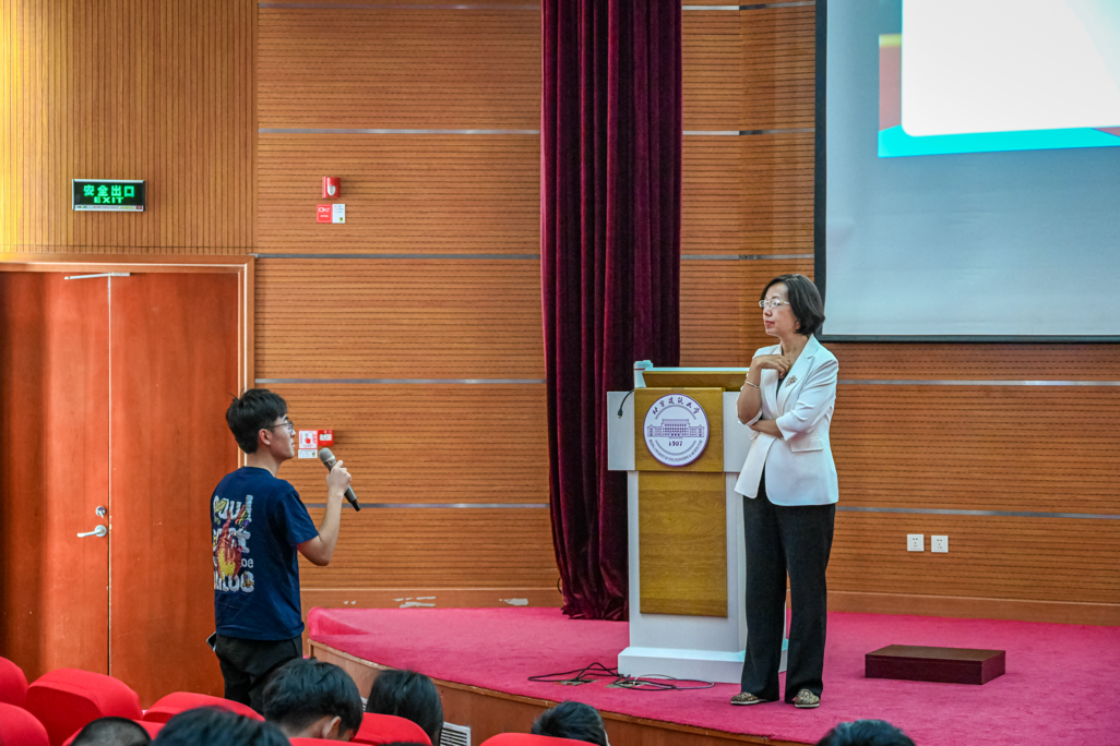 谈到“爱自己”,她与同学们亲切互动,围绕如何探寻生命的意义、实现自己的人生价值等话题展开交流。现场氛围轻松真挚,新生们在畅所欲言中进一步拉近了与老师的心理距离,也对如何度过有意义的大学生涯有了更清晰的认知。她鼓励大家通过“读万卷书、行万里路、阅人无数”不断认识自我,探寻人生价值与使命。同时保持积极情绪、坚韧面对逆境,真正在亚色网 这个大家庭中找到属于自己的人生坐标。