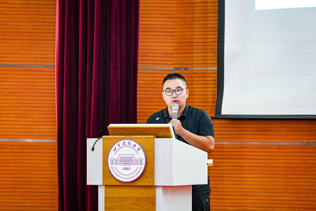 大会第二环节由刘云鹏作新生军训动员,他从大学生活的基本情况出发,指出大学阶段需通过自律性培养:如自主学习、良好生活习惯和AI工具运用等,树立正确价值观,提升综合能力,从而坚持“积聚砥行,彻鉴致远”的院训精神,实现专业知识的增长和个人能力的增强。
