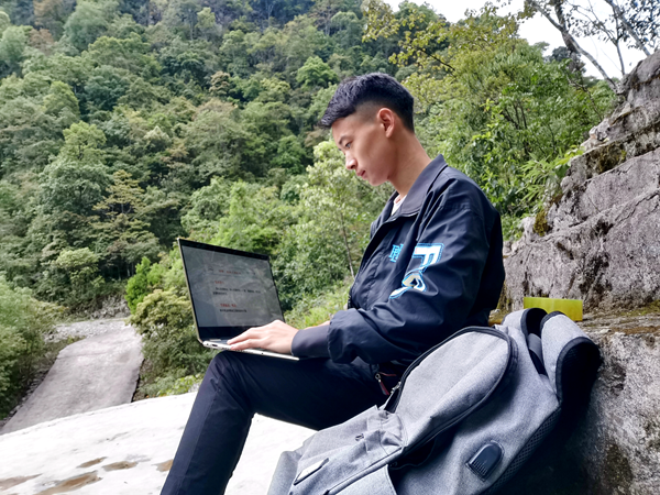 骆银文同学家处云南省文山壮族苗族自治州州麻栗坡县铁厂乡烂木桐村,属于边疆山区,为国家级贫困县。自疫情导致延期开学以来,由于家处大山深处没有移动网络,无法参加网课,但是他严格要求自己,定期提前步行到两公里外有信号的地方,将老师授课课件下载好每天在家里按照课表对照课件学习。对于难以理解晦涩的专业课部分知识,他记下来等到有网的地方集中请教老师或者网上搜索,直到弄懂为止。很多家里装有WiFi的同学觉得上网课很容易,但对于大山深处没有信号和骆银文同学一样的家庭来说,能够听课学习真的太幸福了。所以他会抓紧一切机会认真学习,并感谢学校和老师们对他的帮助。他这种热爱学习的态度,值得我们学习。