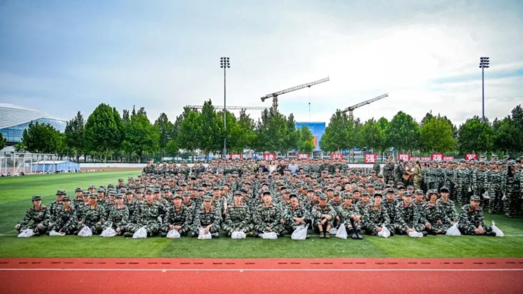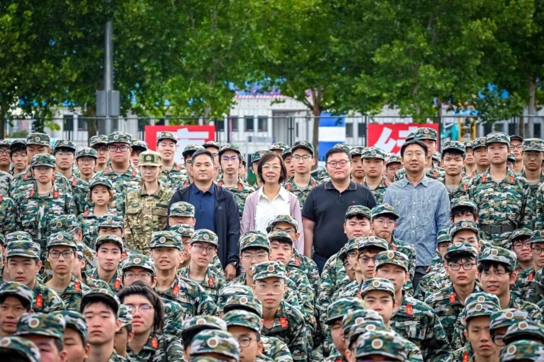 慰问最后,学院老师与全体参训新生、教官共同拍摄了大合照。镜头定格下了一张张洋溢着青春与自信的笑脸,为这段难忘的军训时光留下了珍贵纪念。