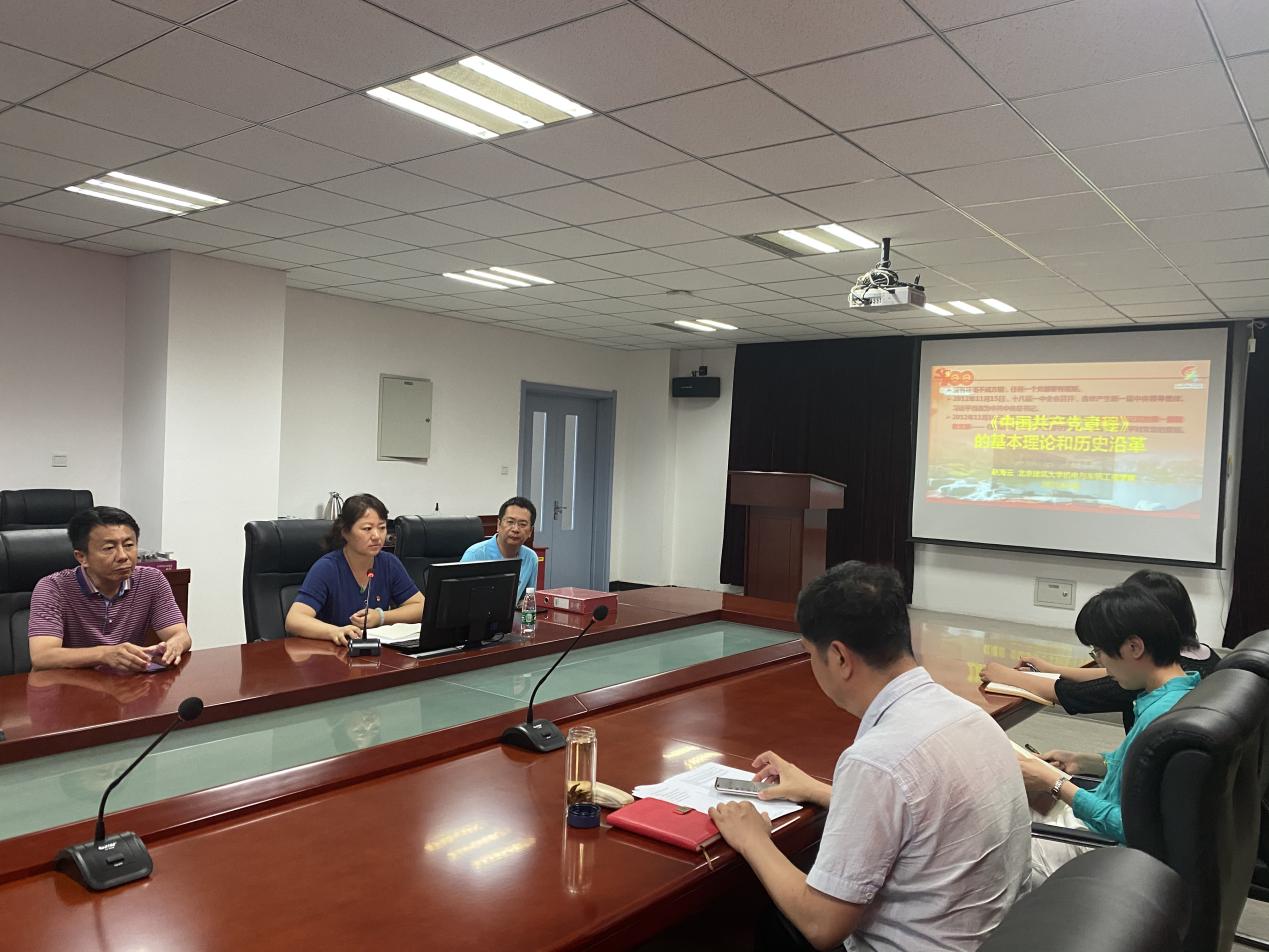 学院党委书记赵海云结合《中国共产党章程》的发展沿革,回顾中国共产党建立、巩固和发展的光辉历程,并对全体党员提出三点要求,一是强化党员意识,坚定理想信念,不断提高党性观念和党员意识;二是强化使命担当,爱岗敬业奉献,确保高标准、高质量推进教学、科研、管理等工作;三是强化支部建设,发挥堡垒作用,全面提升党支部的组织力、凝聚力和战斗力。