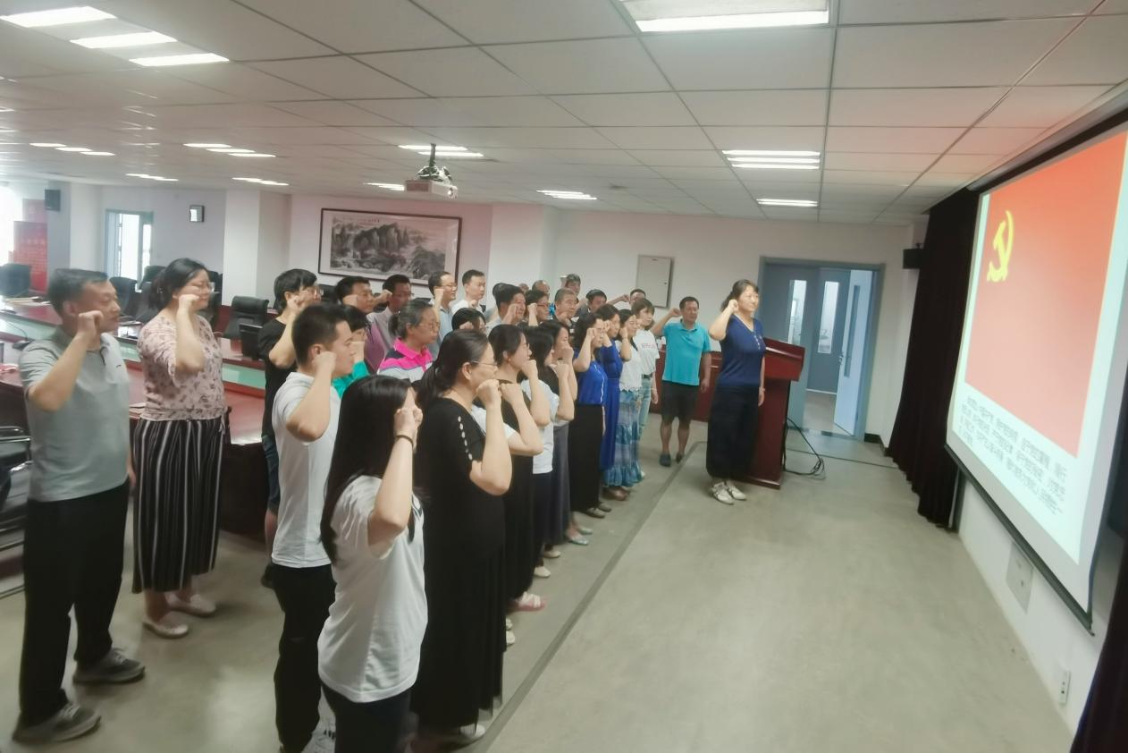 党课开始前,全体党员重温入党誓词,感悟不变初心,再次庄严承诺永远听党话、跟党走。