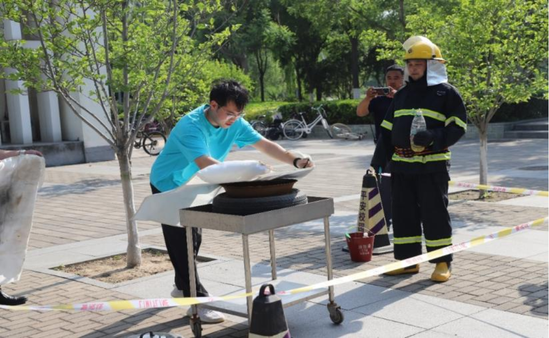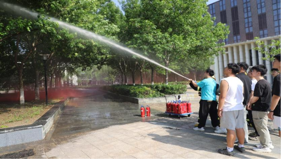 随后的实操环节中,师生们在专业人员指导下进行消防栓、灭火器、灭火毯操作训练。通过反复练习水压控制、水带连接等操作,大家逐步掌握了消防设施的使用要领。
