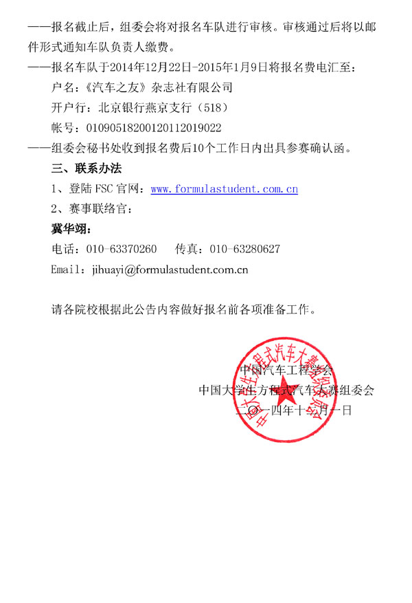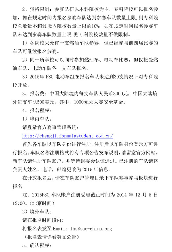 2015昆仑润滑油杯中国大学生方程式汽车大赛启动公告