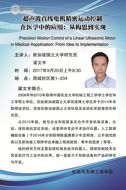 【学术讲座】超声波直线电机精密运动控制在医学中的应用:从构思到实现